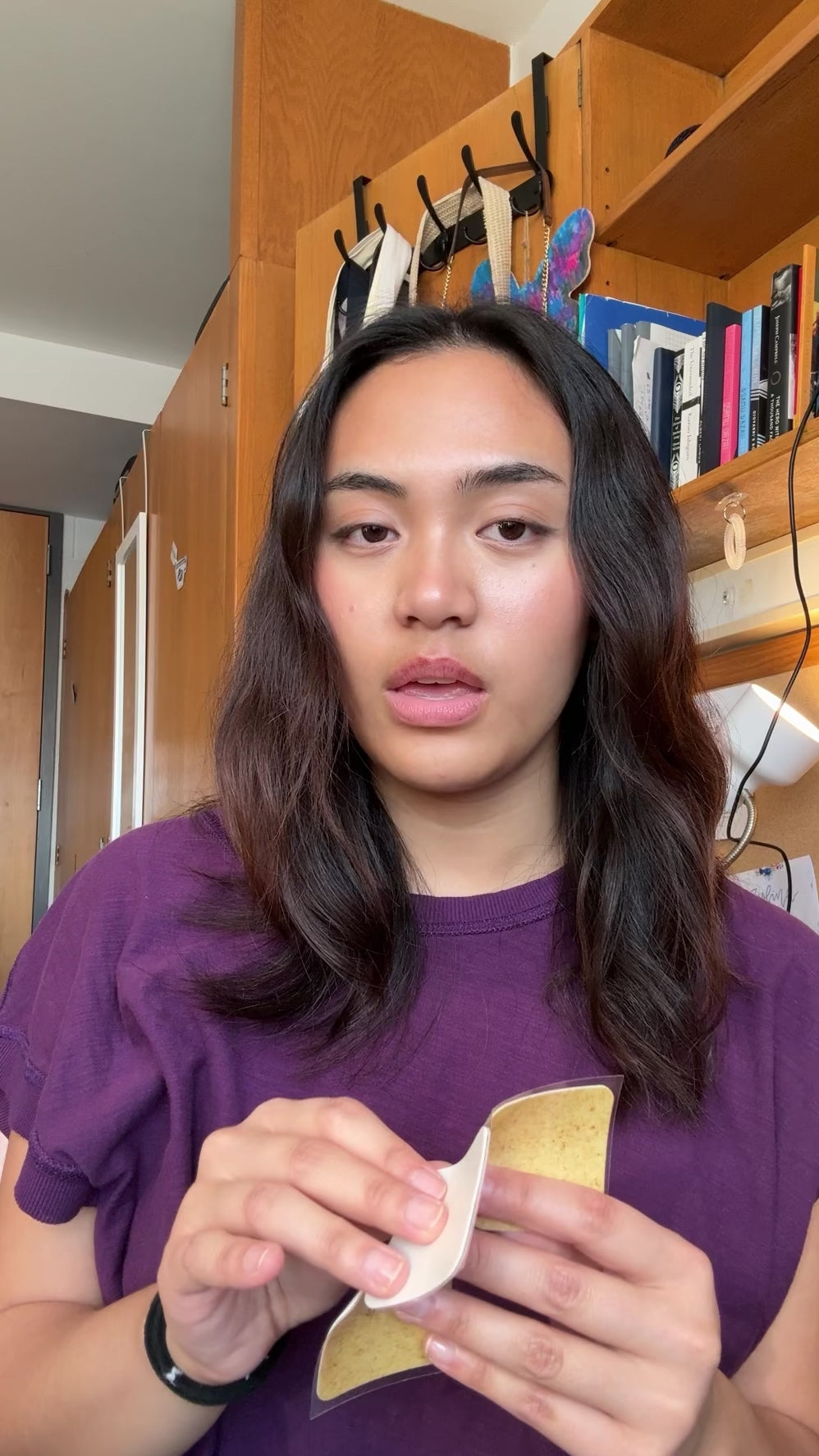 Peel the patch from its backing sheet, being careful not to touch the sticky side too much.