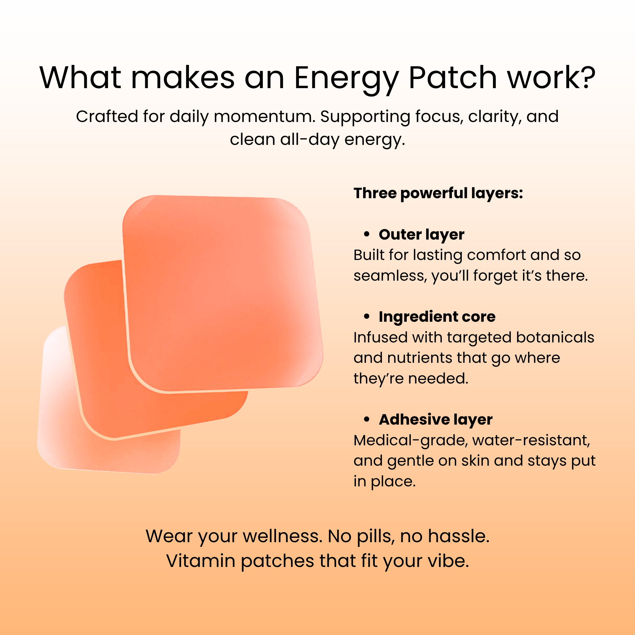 Ideal for powering through your morning routine, boosting pre-workout sessions, or conquering afternoon fatigue—this patch keeps your energy steady and your focus sharp.