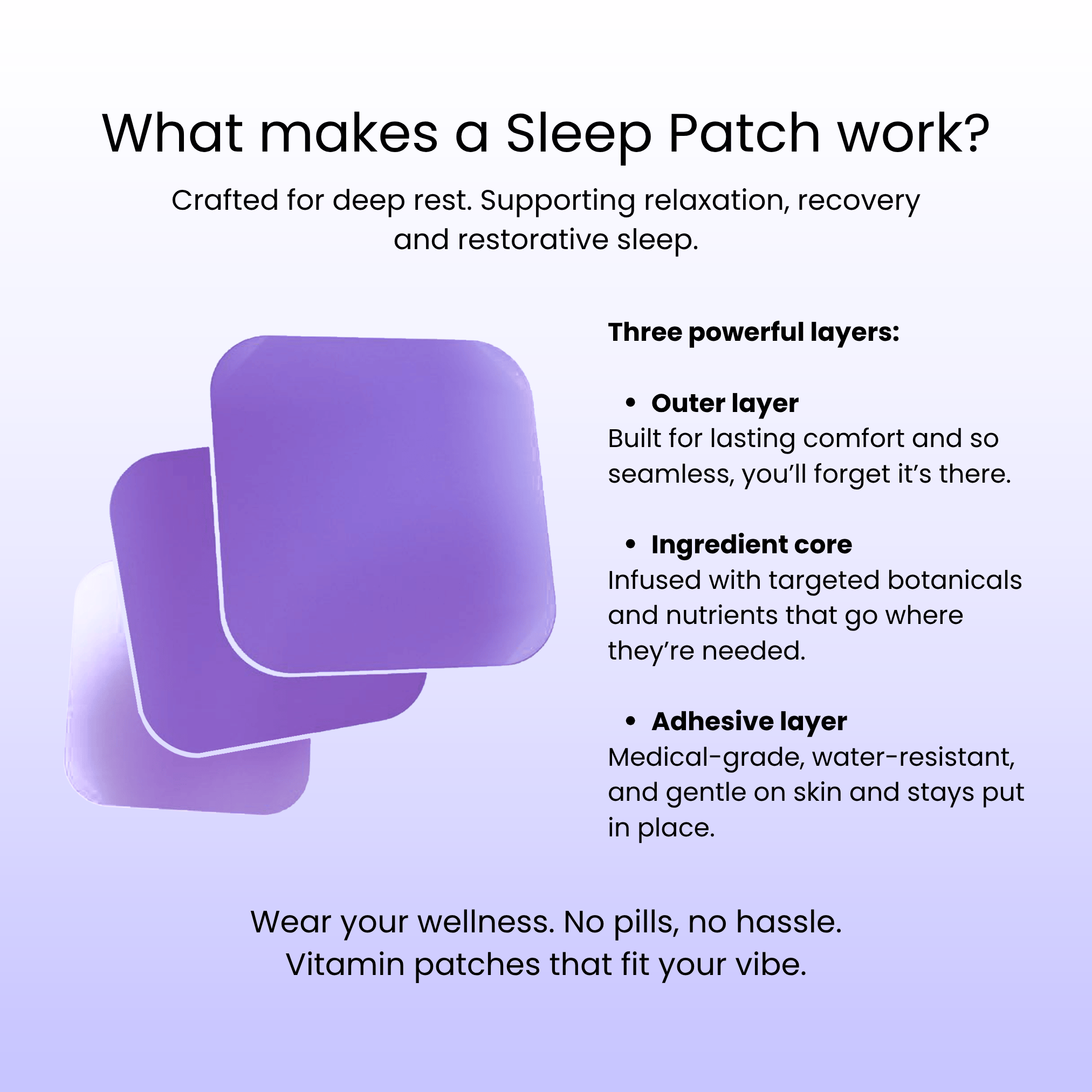Crafted with vegan, latex-free ingredients and lab-tested for purity, the patch works with your body to ease tension and guide you gently into a restful sleep.